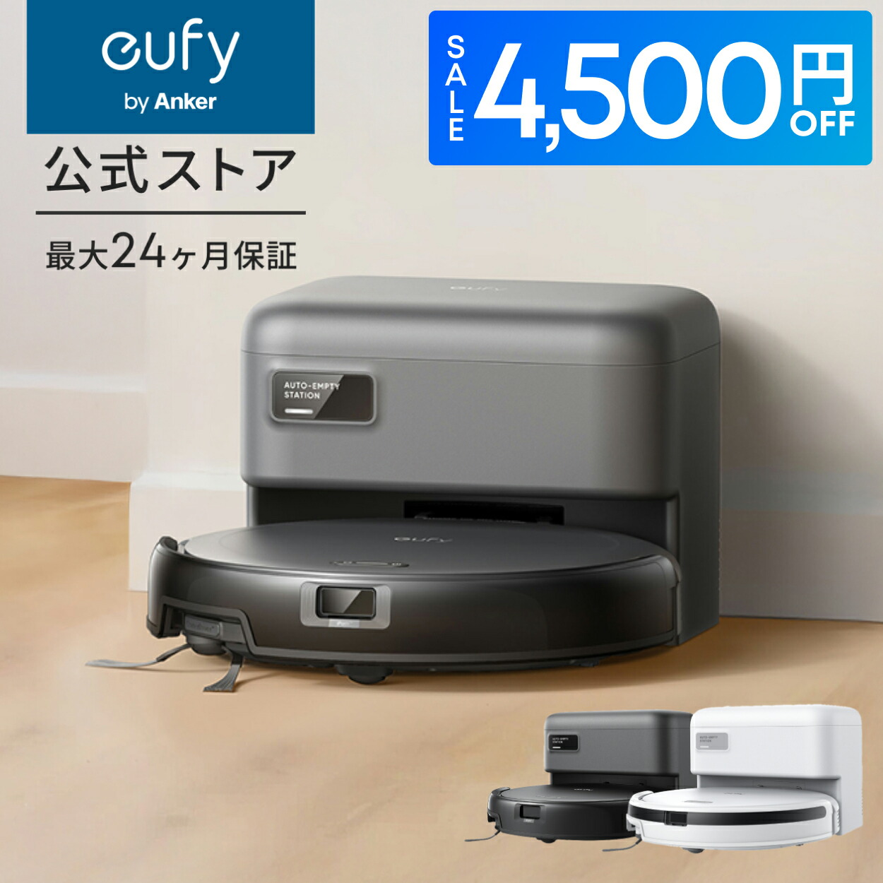 【4,500円OFFクーポン 1/16まで】Anker Eufy (ユーフィ) Robot Vacuum Auto-Empty C10 (ロボット掃除機) 【自動ゴミ収集ステーション/伸縮サイドブラシ/毛絡み除去システム/レーザーマッピング/アプリ操作/落下防止/薄型 / 最大24ヶ月保証】 [楽天] #Rakutenichiba
